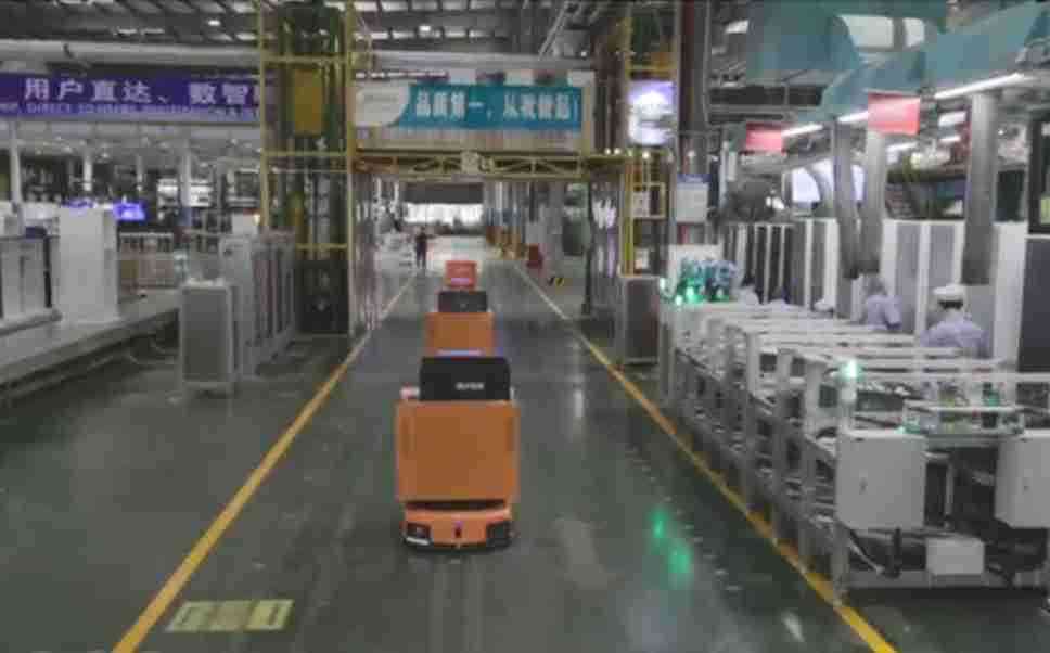 为车载冰箱物流配送打造的智能解决方案,,包含产中物流通过潜伏举升AMR搬运至线边,,产后成品物流智能仓储,,,,流程包含产中物流智能齐套入库,,,线边安灯叫料AMR智能配送至线边,,,,成品入库、、、出库,,通过无人堆高车机器人,,,,智能仓储管理替代人工作业管理,,,实现更高存储、、、、更高效率、、、更具柔性化的解决方案。。。